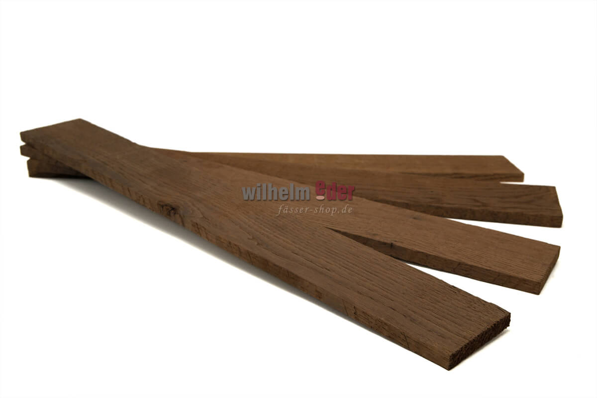 Staves that can be used in high-quality steel tanks or big wood barrels. The tank staves made of American oak are offered in five different toastings. These staves are packed at 30 pieces each, and within a food safe plastic foil secured in a hygienic manner to avoid dirt. The staves are drilled at both ends in order to be able to attach them to the tank by using a high-quality steel rod or string.Just as the barrel doves these doves are air-dried for several months before the further processing. Toast Konvektormat: Hot air process quickly producing aroma flavours Toast Infra Rot: Process slowly and sustainably producing aroma flavours