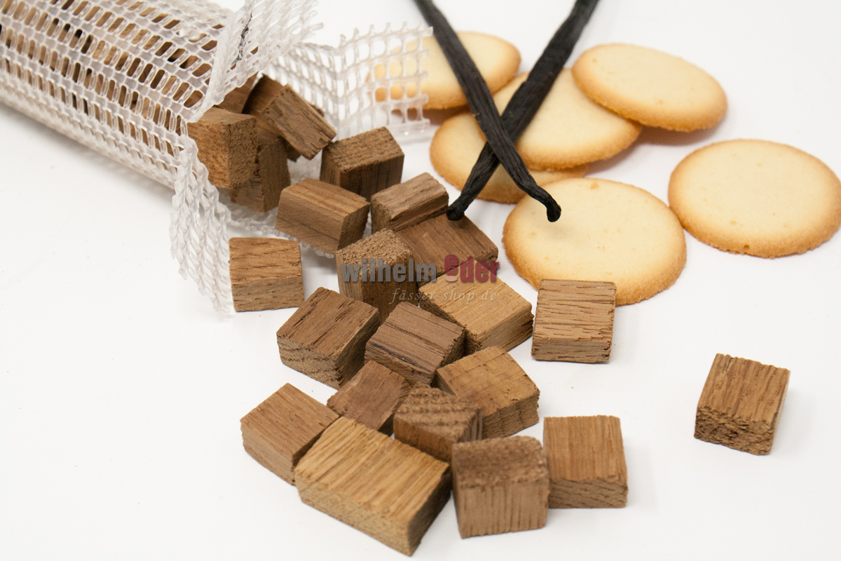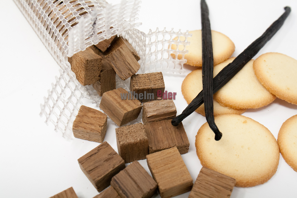 The cubes are made of freshly emptied Cognac barrels which are produced from French Limousin Oak. They are not only perfect for maturation of grain, whisky and brandy but also perfectly suited for fruits spirits, such as cherry, pear and much more. They are excellent for intensifying the flavor of beer, Bierbrand, whisky and grain etc.Price / packaging (1 or 5 kg) Dispatch in aluminium-free, odourless and resealable stand-up pouches made of kraft paper.