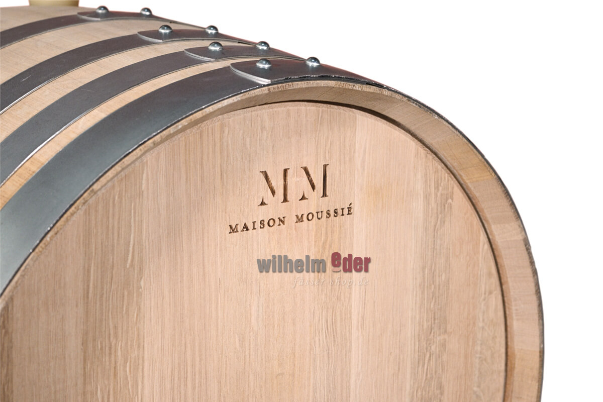 The barrels from Maison Moussié combine authenticity and innovation with the utmost elegance. They are designed to protect the wine's identity and enable the pure expression of the fruit.Innovative Toasting Technology The barrels are toasted using a patented technology involving hot stones. This combustion-free process utilizes natural stones and water elements combined with heat to create uniformly toasted barrels. Electrical conductors transfer heat directly to carefully selected natural stones. This heat energy is then transferred from the stones to the barrel staves. Additionally, convection heat generates water, which is sprayed at specific intervals during the toasting process, transforming into steam and circulating hot air to increase the temperature between the toasting machine and the staves.Jade Natural jade is an option that imparts additional elegant qualities to the finished wine.Wood - Chêne Francais Selection Premium Forêts Françaises - 24 months – very fine grain. Our premium barrel is made from very fine-grained oak (1.5 to 2 mm) sourced from French forests selected for their unique properties. The oak is aged for 24 months in our own sawmill.Available Toastings:Harmony: Brings structure, aromatic freshness, purity, and length to white and light red wines.Volupté: Offers aromatic complexity with great respect for the wine. Brings volume, roundness, and length. Suitable for white wine and light red wines.Elegance: Enhances volume and length with notes of roasting and spices. Recommended for grape varieties grown in warmer climates.Complexité: Enhances the fruit of the wine both on the nose and palate. Ideal for achieving a balanced aromatic and structural result.Hoops: 8 galvanized hoopsBung made of silicone