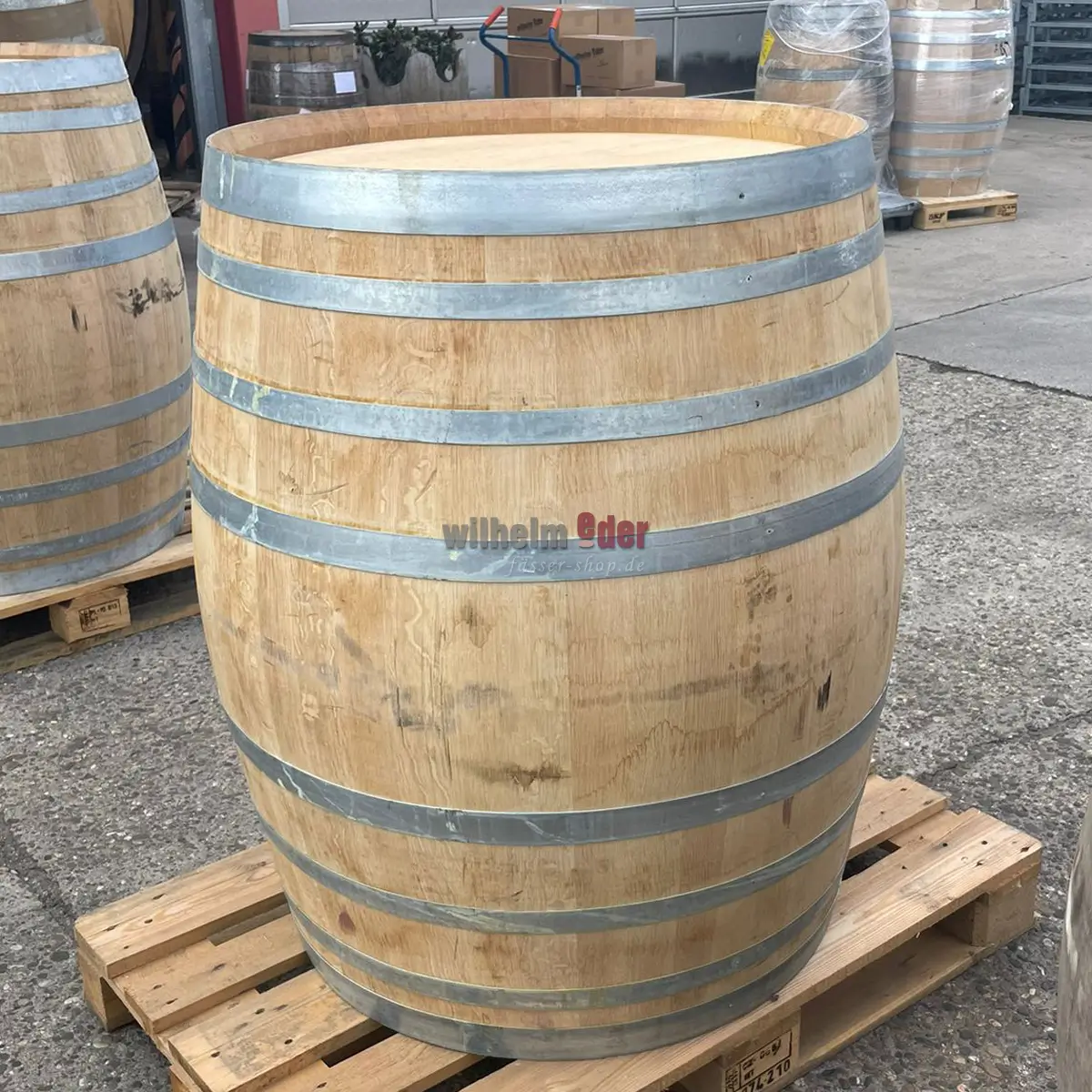 Freshly emptied 500 L red wine barrels from Rioja, previously filled in Spain.