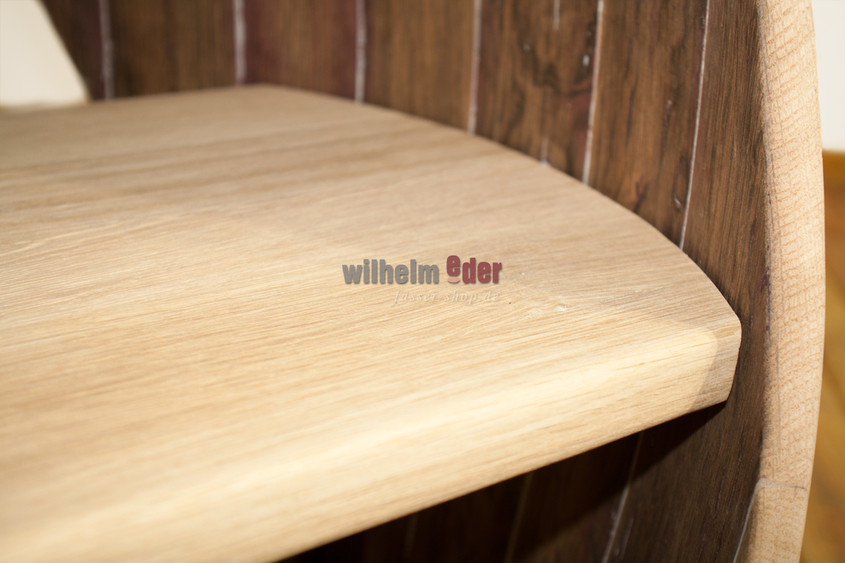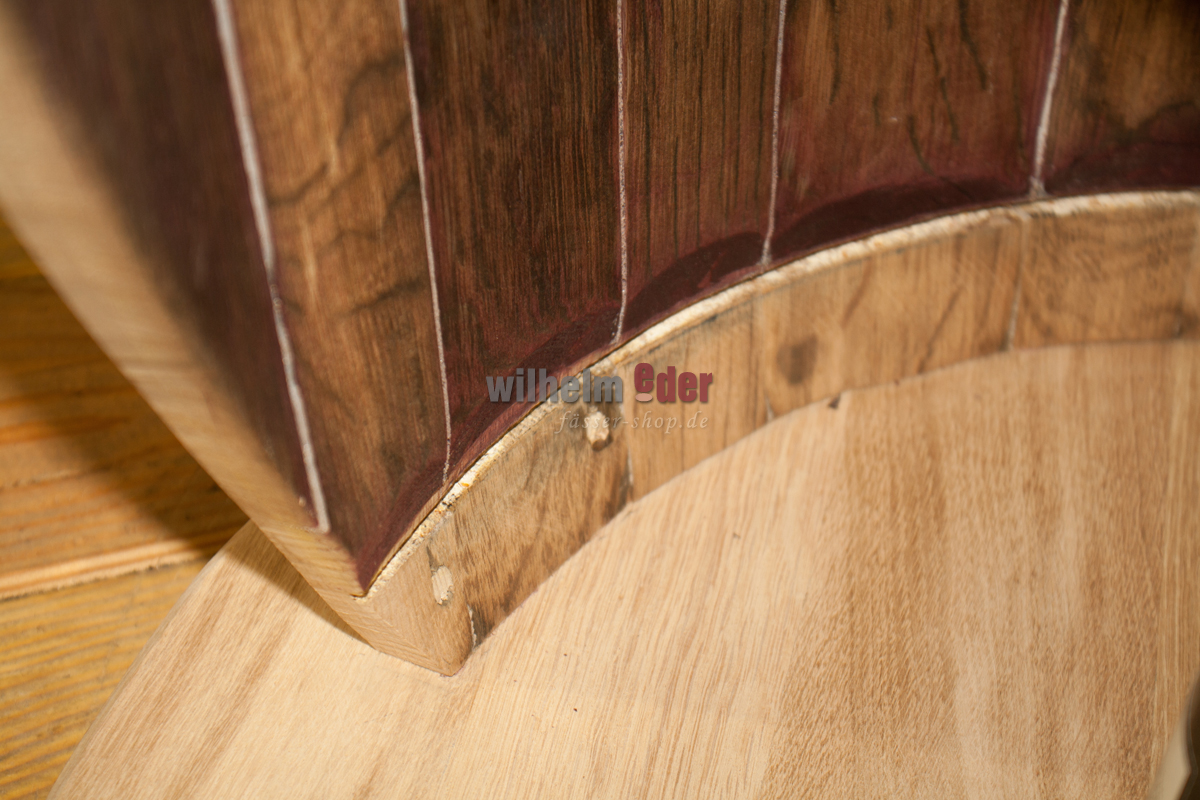 Before making shelves, we let the barrels dry and glue the staves individually. This elaborate process ensures the stability of the shelf and prevents the wood from warping due to temperature fluctuations. Please note, however, that too dry and warm heating air does not do the barrel good.