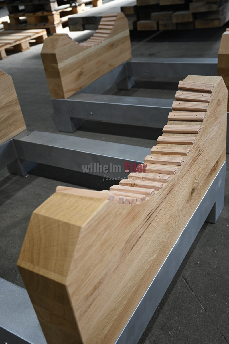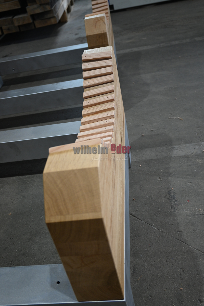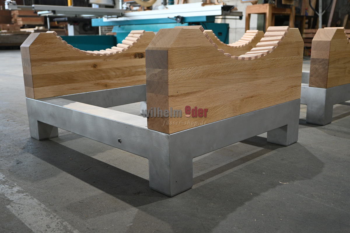 Stainless steel/oak barrel storage for oval barrels up to 25 hl