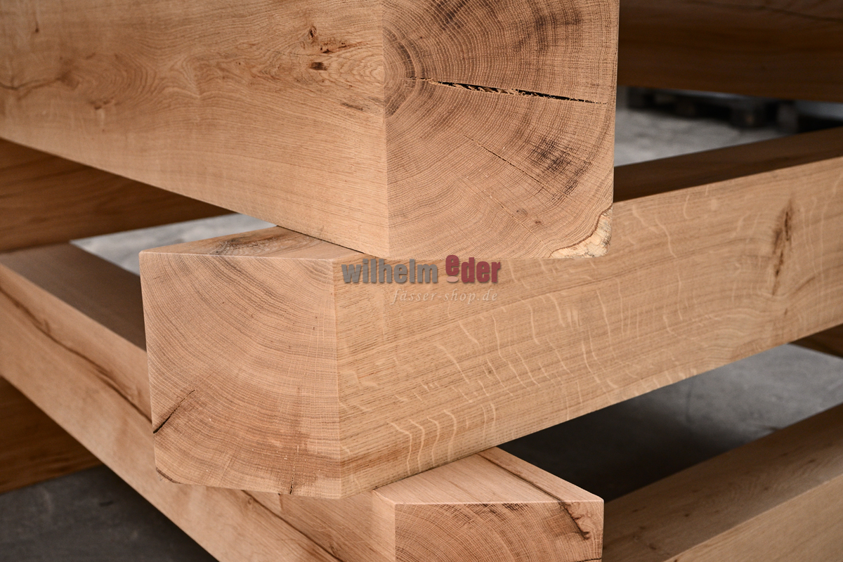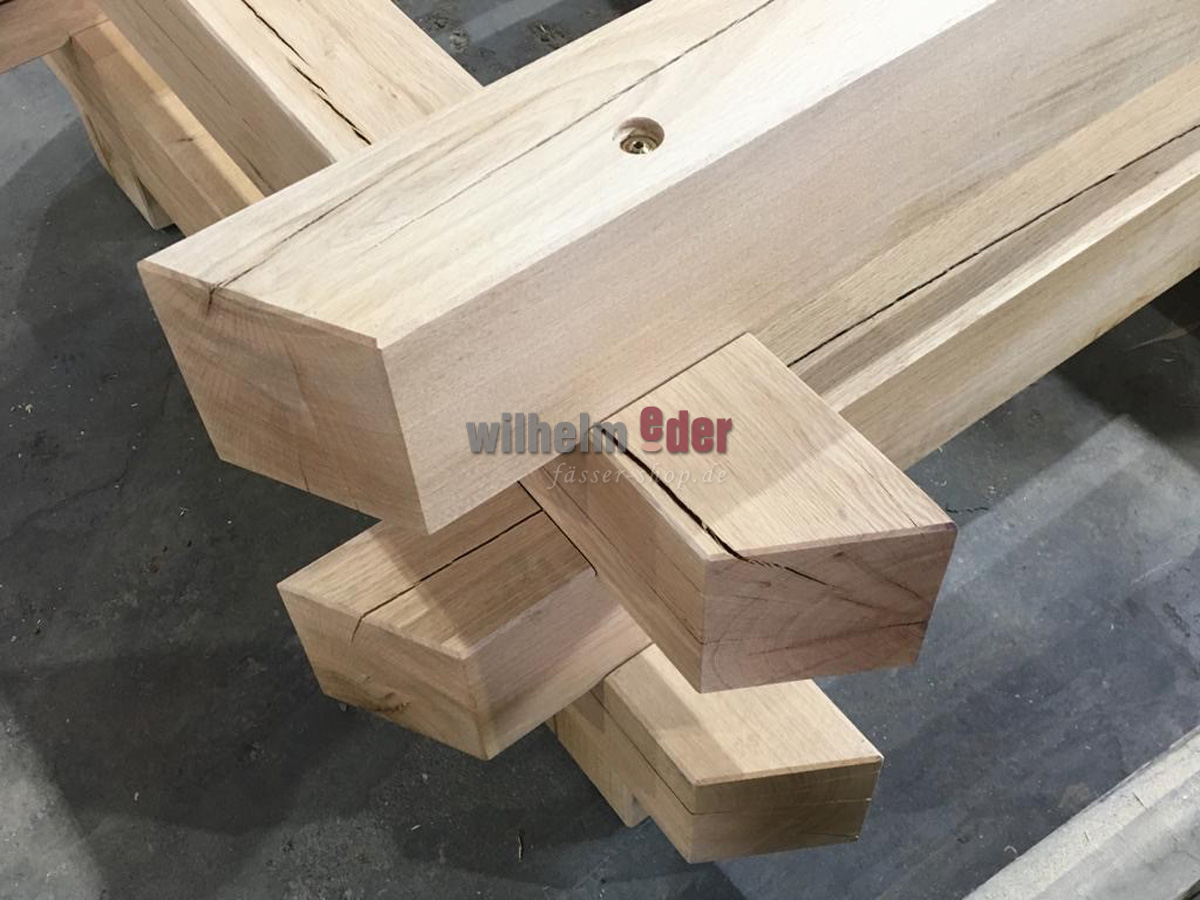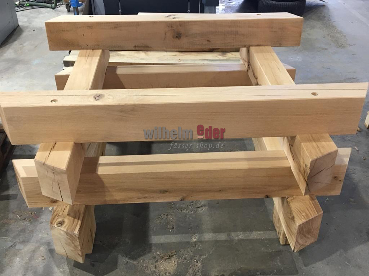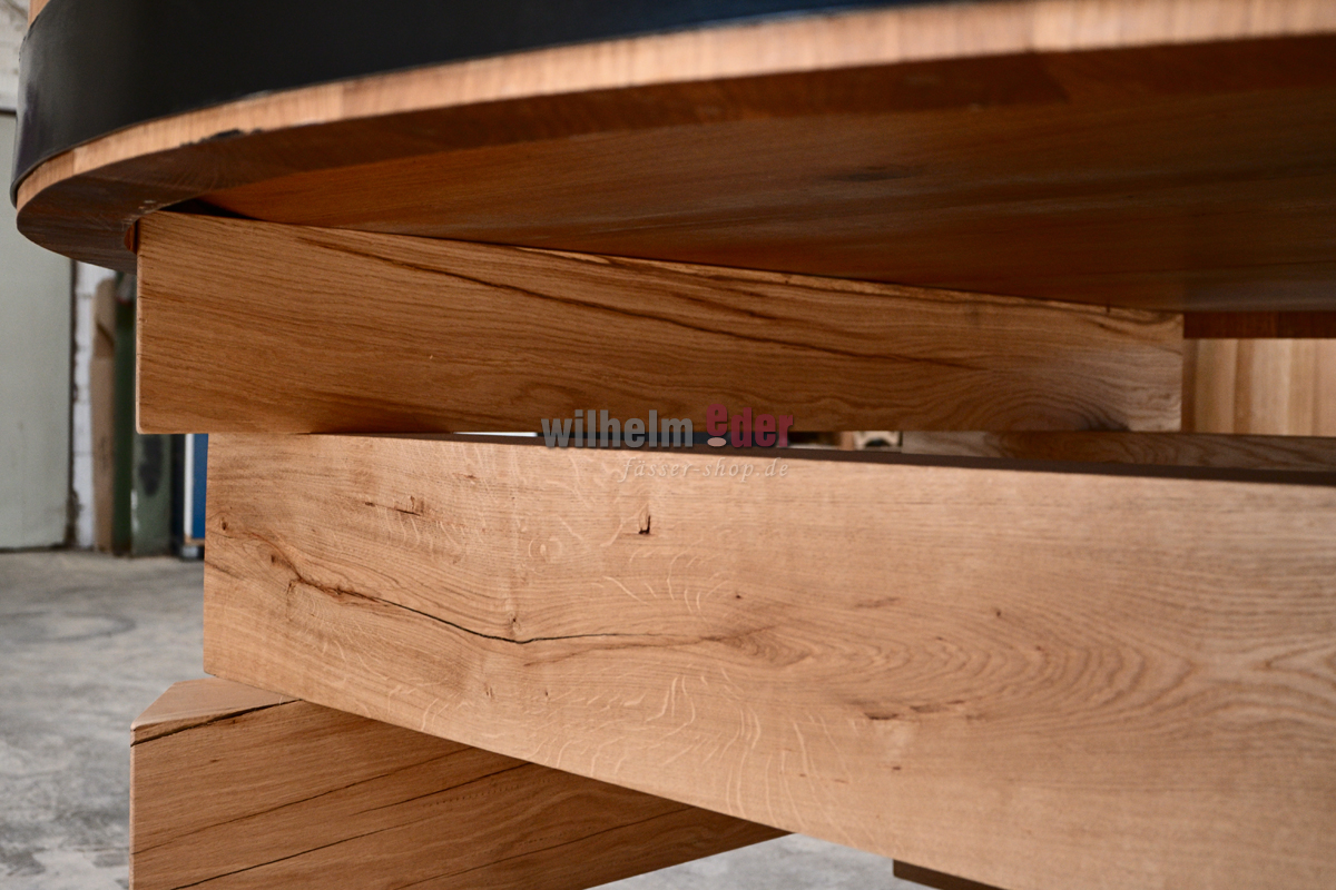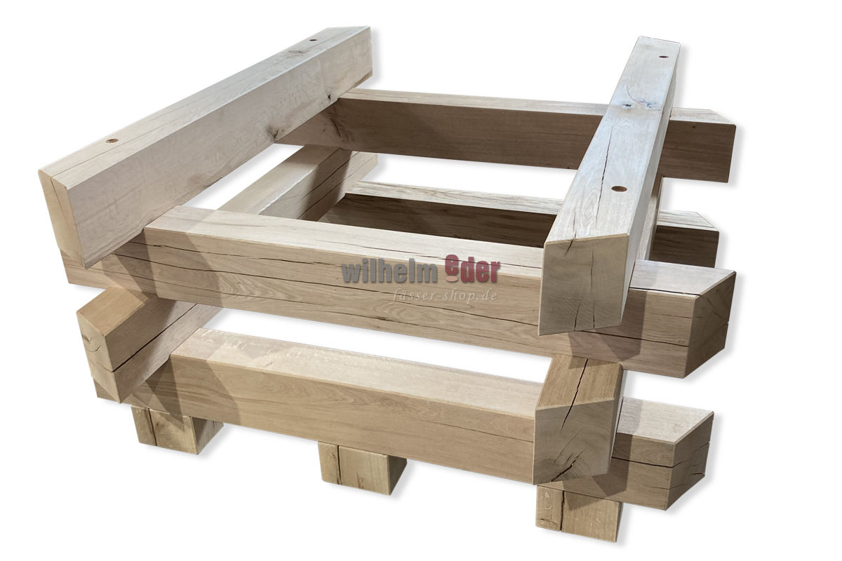 Wooden barrel storage made of air-dried oak wood from our own cutting for an approx. 6000 l fermentation tank. The dimensions are adapted to the vat and can therefore vary.